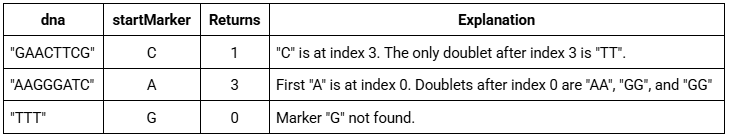 * of startMarker. Precondition: dna is not null, dna.length() >= 2.