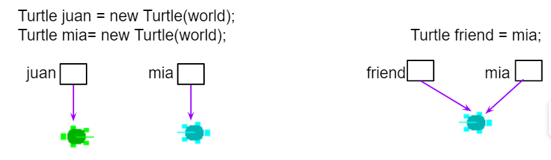 objects, refer to the same object. In the figure below, we are creating two separate Turtle