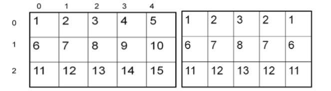 How can we write a method to mirror a picture in this way? One way to figure out the algorithm, which is a description of the steps for solving a problem, is to try it on smaller and simpler data. Figure 2 shows the result of mirroring a two-dimensional array of numbers from left to right vertically.