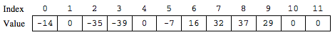 Write the method trimSilenceFromBeginning that removes the silence from the beginning of a sound. To remove starting silence, a new array of values is created that contains the same values as the original samples array in the same order but without the leading zeros. The instance variable samples is updated to refer to the new array. For example, suppose the instance variable samples refers to the following array.