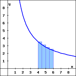 Thus, we have two variables to explore: the number of rectangles and the height of each rectangle. We can explore these choices dynamically, and this interactive is a particularly useful one. There we see the image shown in Figure 4.2.5, but with the opportunity to adjust the slider bars for the heights and the number of rectangles.