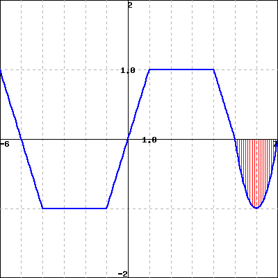 On the interval \([-1,1]\text{,}\) sketch a labeled graph of \(y = f(x)\) and write a definite integral whose value is the exact area bounded by \(y = f(x)\) on \([-1,1]\text{.}\)