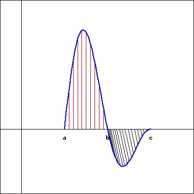 We call the symbol \(\int\) the integral sign, the values \(a\) and \(b\) the limits of integration, and the function \(f\) the integrand. The process of determining the real number \(\int_a^b f(x) \, dx\) is called evaluating the definite integral. While there are several different interpretations of the definite integral, for now the most important is that \(\int_a^b f(x) \, dx\) measures the net signed area bounded by \(y = f(x)\) and the \(x\)-axis on the interval \([a,b]\text{.}\)
