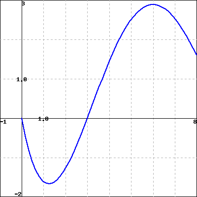 Sketch a precise graph of \(y = A(x)\) on the axes at right that accurately reflects where \(A\) is increasing and decreasing, where \(A\) is concave up and concave down, and the exact values of \(A\) at \(x = 0, 1, \ldots, 7\text{.}\)