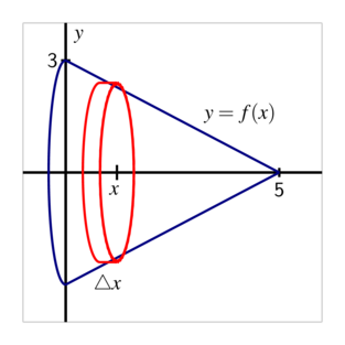 V = \int_a^b \pi r(x)^2 \, dx\text{.}