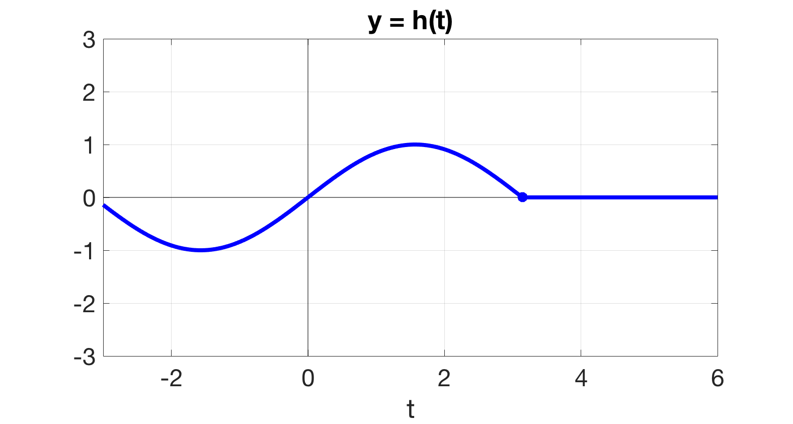 \(\displaystyle \ds h(t) = \left\{ \begin{array}{ll} \sin t, \amp t \lt \pi \\ 0, \amp t \ge \pi \\ \end{array} \right.\)