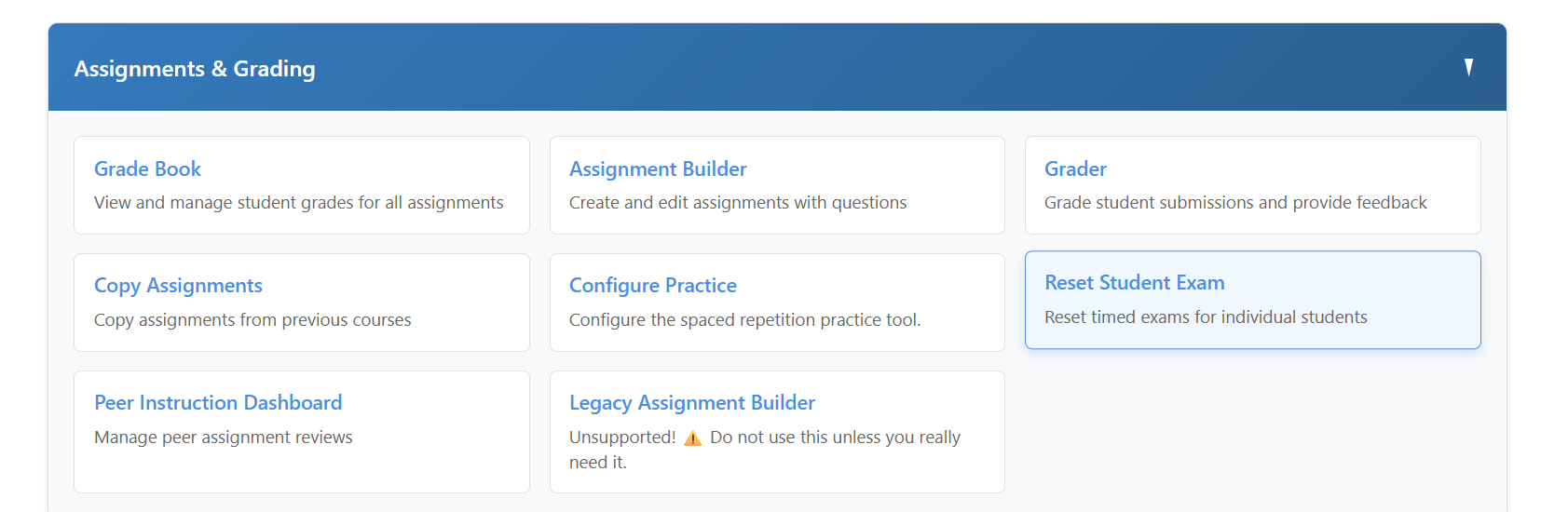 Subsection 6.4.2 Resetting an Exam