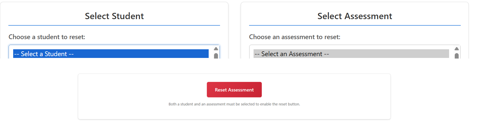 You just select the student and the assessment name and then press the red reset button.