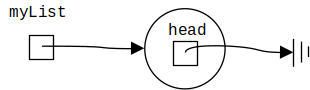 The isEmpty function, shown in Listing 3.22.9, checks to see if the head of the list is a reference to null. The result of the boolean expression this.head == null will only be true if there are no nodes in the linked list. Since a new list is empty, the constructor and the check for empty must be consistent with one another. This shows the advantage to using the reference null to denote the end of the linked structure. In Java, null can be compared to any reference. Two references are equal if they both refer to the same object. We will use this often in our remaining methods.