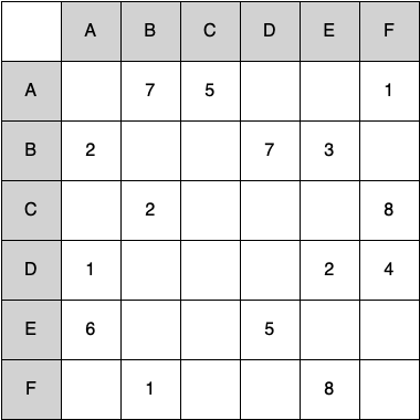 Figure 10.25.1. 6 x 6 Adjacency Matrix 2.