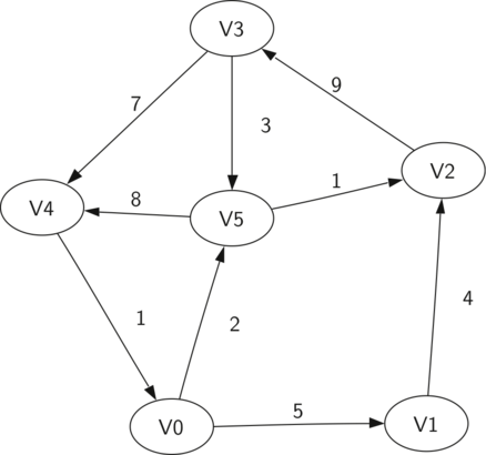 FigureΒ 10.2.1 shows another example of a simple weighted digraph. Formally we can represent this graph as the set of six vertices: