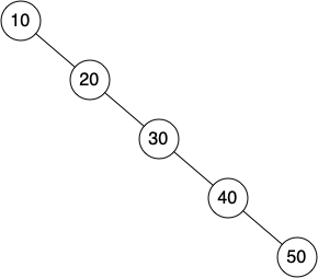 Unfortunately it is possible to construct a search tree that has height \(n\) simply by inserting the keys in sorted order! An example of this is shown in FigureΒ 8.5.1. In this case the performance of the
