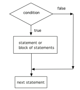 if statements test a boolean expression and if it is true, go on to execute the following statement or block of statements surrounded by curly brackets { } like below.